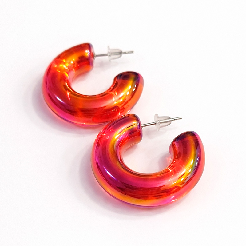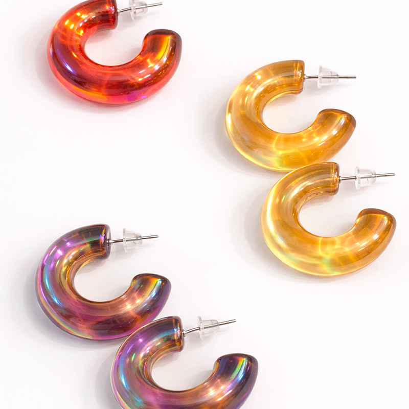 Estas candongas tornasol de acrílico son la combinación perfecta de frescura, modernidad y diversión. Su efecto iridiscente refleja la luz de manera única, cambiando de color según el ángulo y dándote un look diferente en cada momento.
